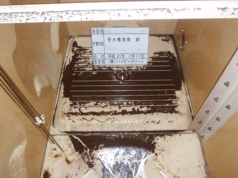 マンションや学校などに設置されている飲料水タンクの清掃です。飲用など生活で使用する水を貯めてポンプの圧力で水道の蛇口へ水を送ります。タンクの中は一般的には目にすることはありませんが、手をかけなければとてもひどい状況になります。また、タンク内の清掃や水質検査は法的にも義務付けがある場合もあります。